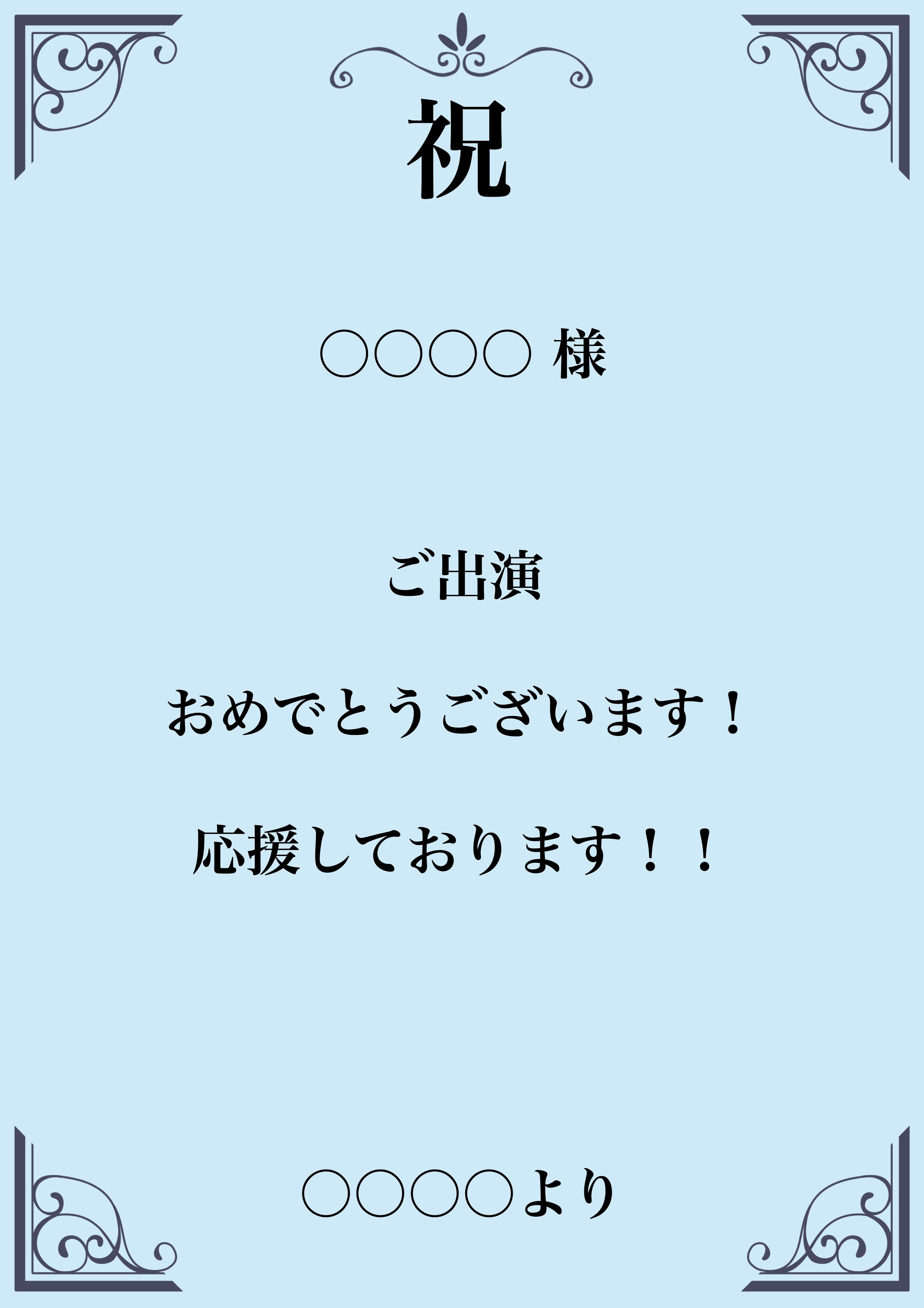 出演者へメッセージ入りのお祝い札をお贈りできるサービスとなります。